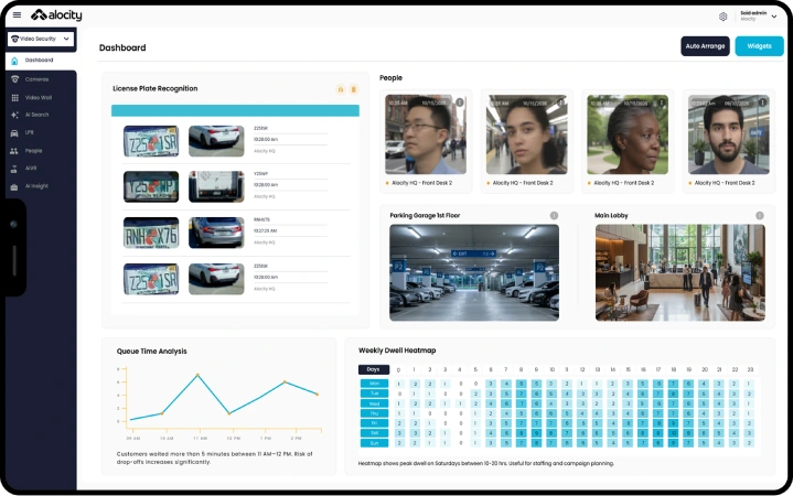 Alocity’s true end to end platform unifies AI video, access control and visitor management powered by AI insights and analytics, Managment anytime, anywhere, on any device.